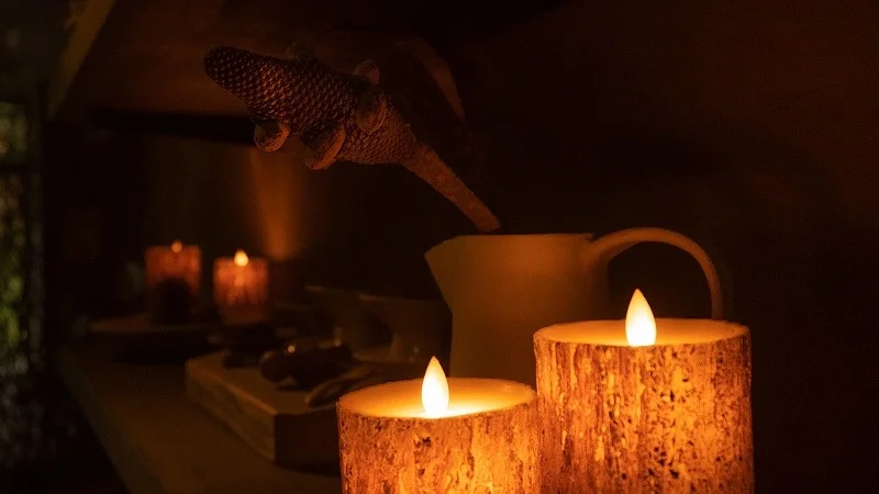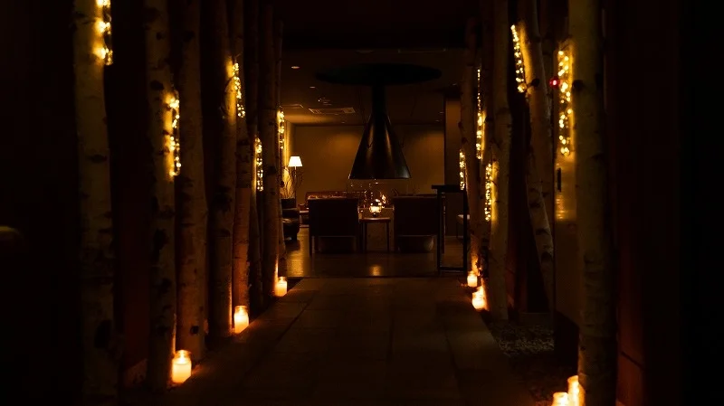 館内の照明を落とし、ロビーやダイニングをやさしい光で彩る人気企画。冬の夜に“静かな非日常”を。