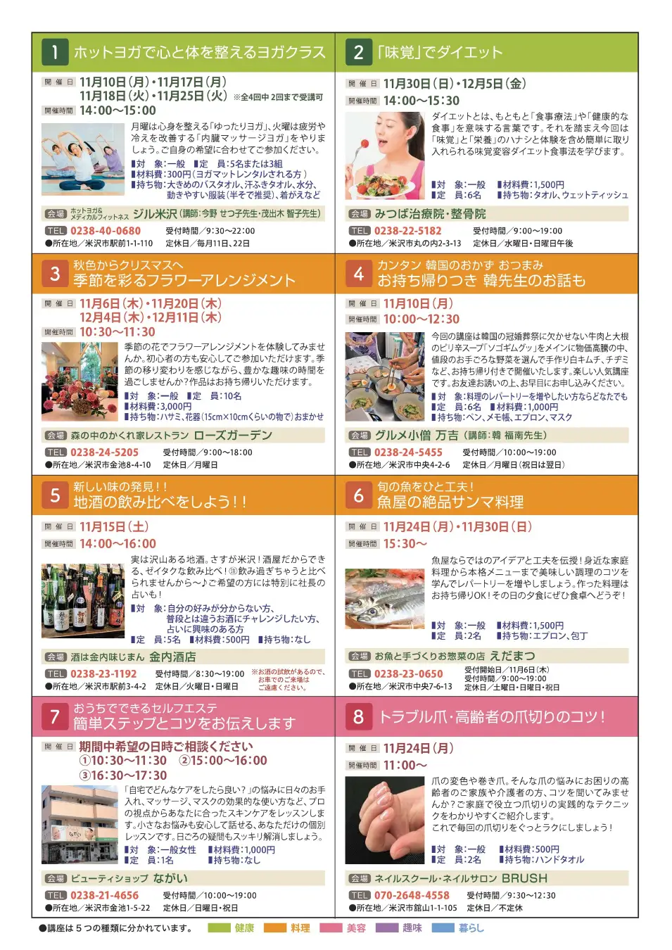 米沢の商店主や専門家が先生になって、暮らしに役立つコツを無料レッスンで伝授する「米沢まちゼミ」がこの秋も開催されます。